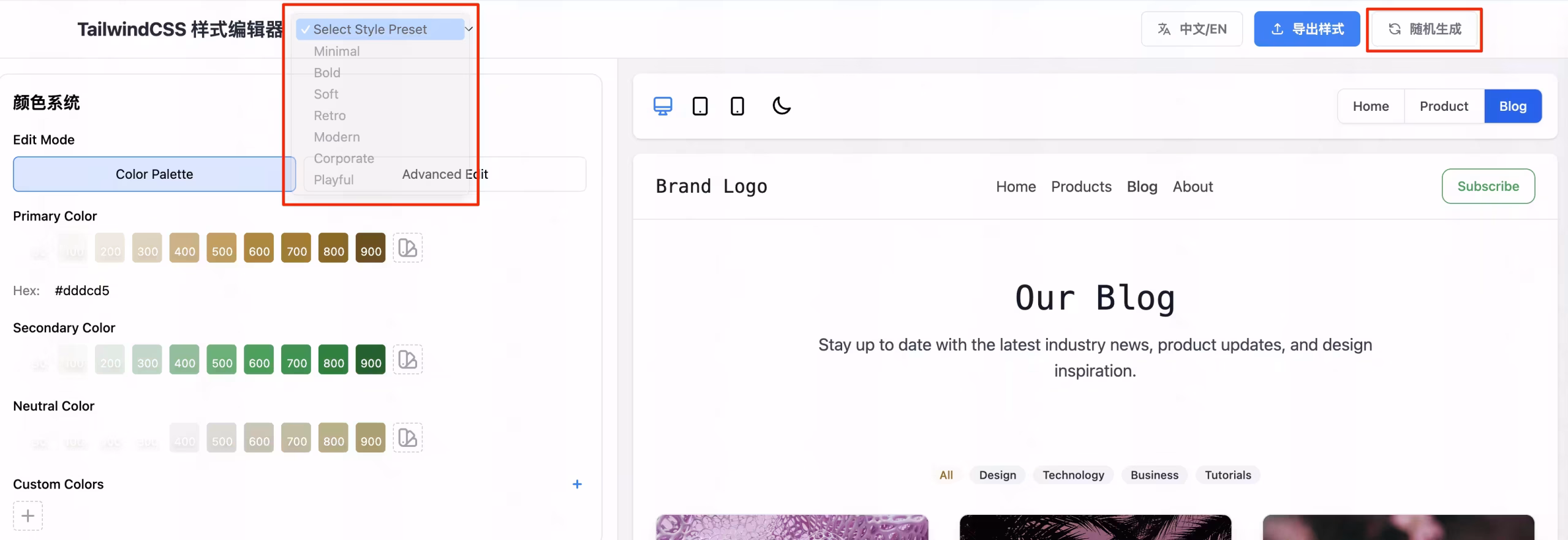 因为这套提示词是基于 TailwindCSS 的,刚好他就设定了非常多已经整合好的 CSS 样式,我们只需要在更改一部分它默认的样式的值就可以让我们的页面发生很大变化。